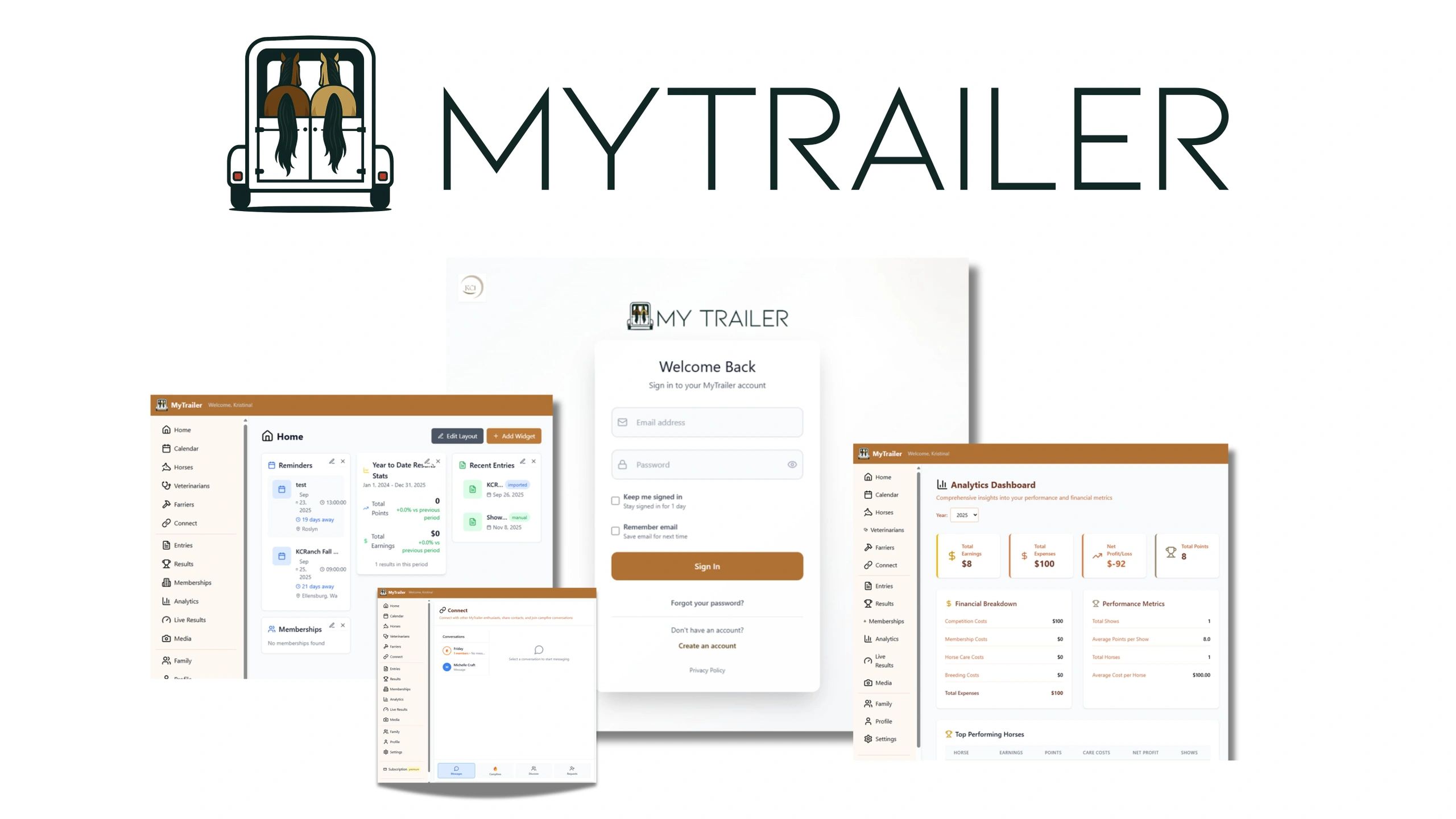 We offer more than just horse management software — we provide peace of mind and a smarter way to stay connected to what matters most. Our platform is designed to simplify every aspect of horse ownership, from daily care and feeding to health tracking and cost management. For show competitors, we make entering events, tracking results, and managing memberships effortless, with live KCIRodeo integration built right in. Families and teams can collaborate under one account, keeping everyone on the same page with horses, schedules, and results. And because memories matter just as much as records, our media hub lets you capture photos and videos to celebrate your horses’ milestones. Whether you’re managing one horse or twenty, training at home or competing in the arena, we bring all the tools you need together in one place — making horse care simpler, smarter, and more enjoyable.